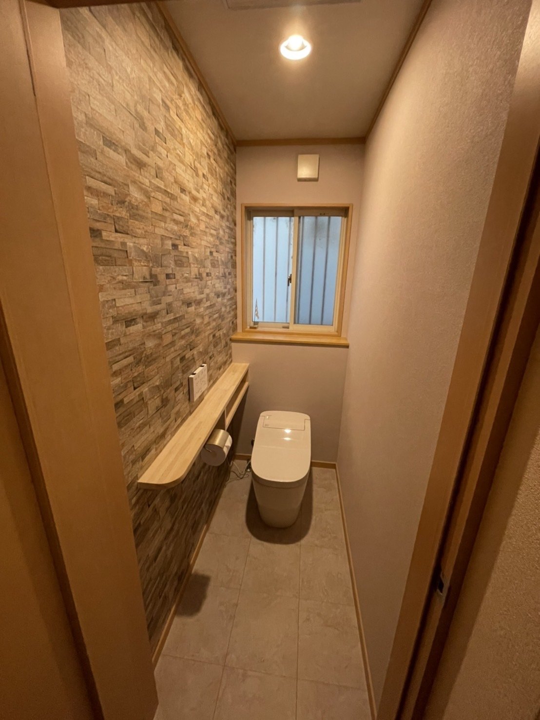 「壁面でアクセント」狭い空間を片方の壁面でアクセント。(手洗いは入り口洗面室で・・)